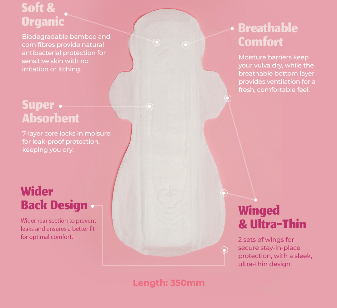 - Soft & Organic: Biodegradable bamboo and corn fibres provide natural antibacterial protection for sensitive skin with no irritation or itching.